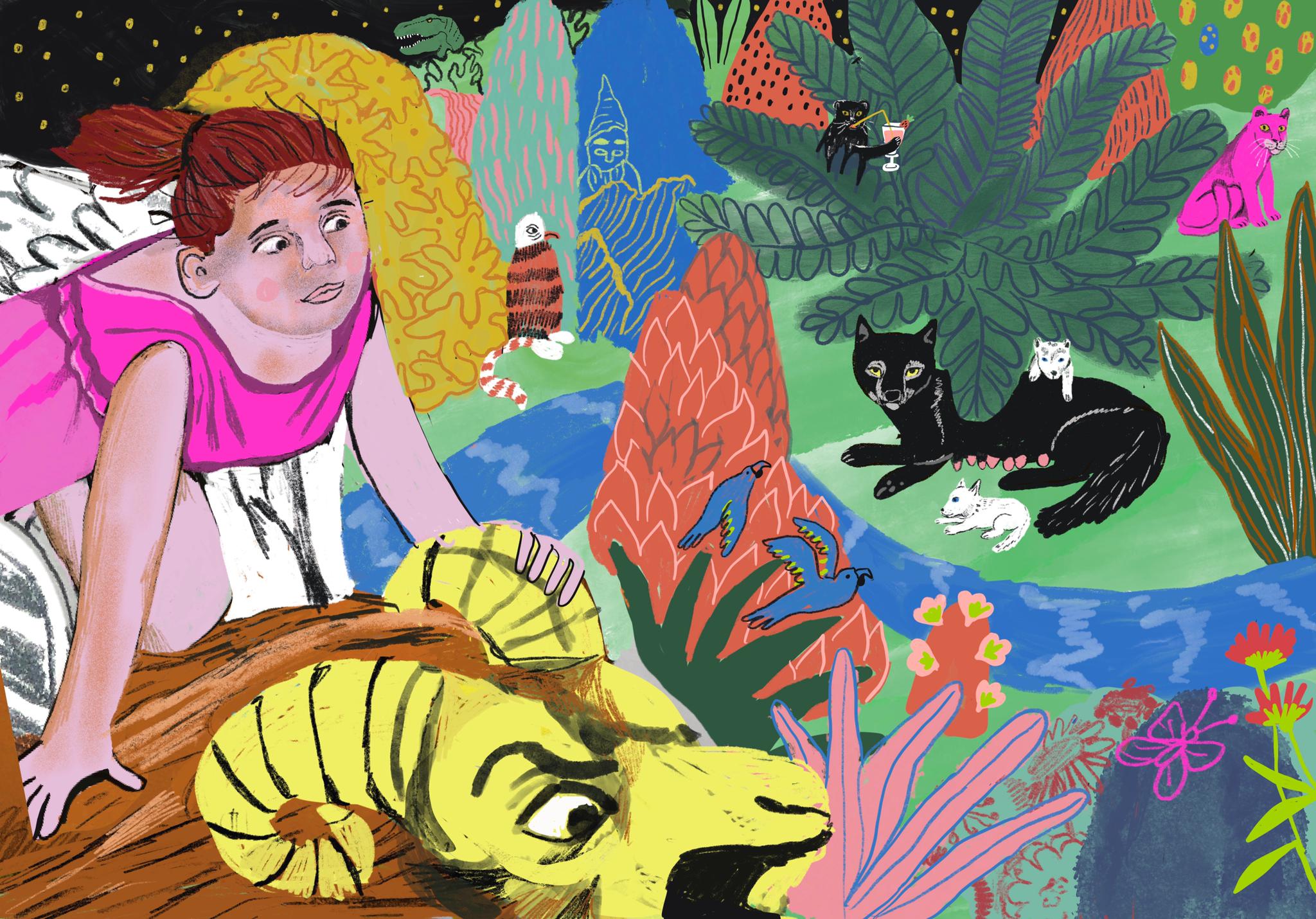 C’est en visitant le festival Fumetto de bande-dessinée en 2019 afin de connaître les jeunes talents actuels que j’ai découvert les dessins de Wanda Dufner. Son univers très fantasmagorique – à la fois coloré et profond – allié à un trait mature m’ont donné envie de travailler avec elle. Sa technique pleine de fraîcheur s’est adaptée parfaitement aux traces vives de mon passé.