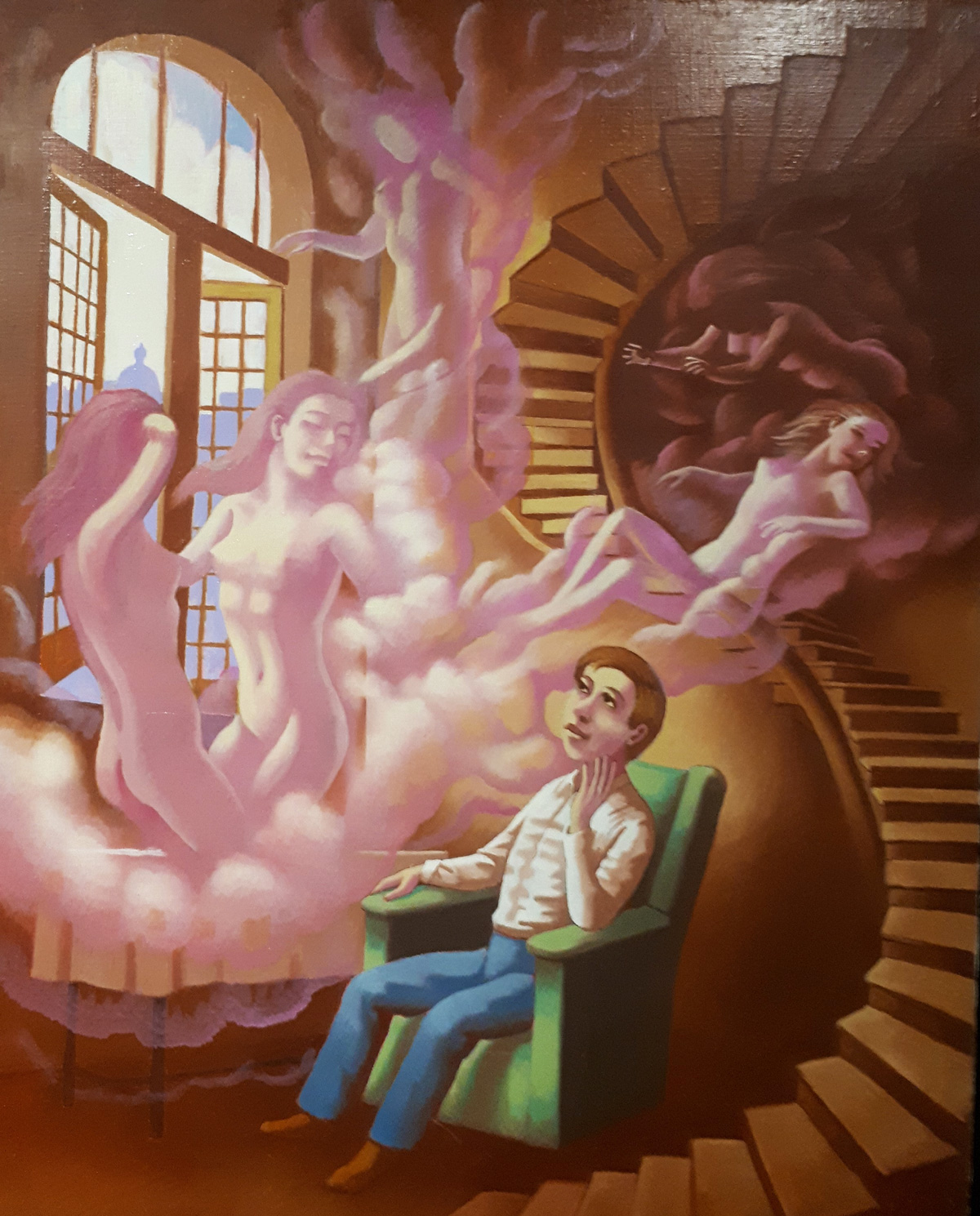 sur un cheval ailé, survolant les collines corporelles, il est là le rêve éveillé !