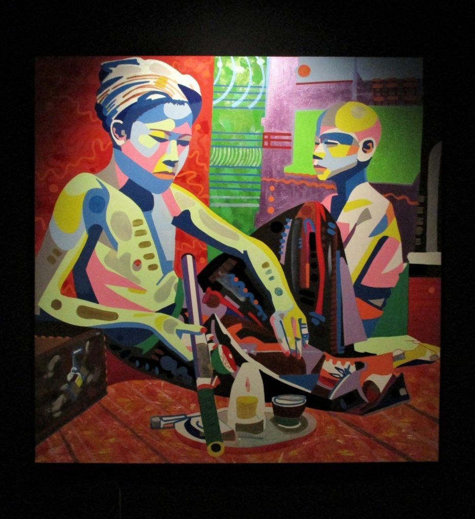 Bercés par les clapotis d’une dreammachine fluo de Brion Gysin et Ian Sommerville, on avance dans une matrice noire, passant de picotements visuels en enchantement métaphorique. Robert Combas « Psyché la Barbu », Olivia Clavel, « Papa est en voyage », Frédéric Pardo ou Kiki Picasso sont autant d’inspirés clairvoyants de cette envolée « illuminée » qui oscille entre le rêve éveillé et l’envie d’un monde meilleur.