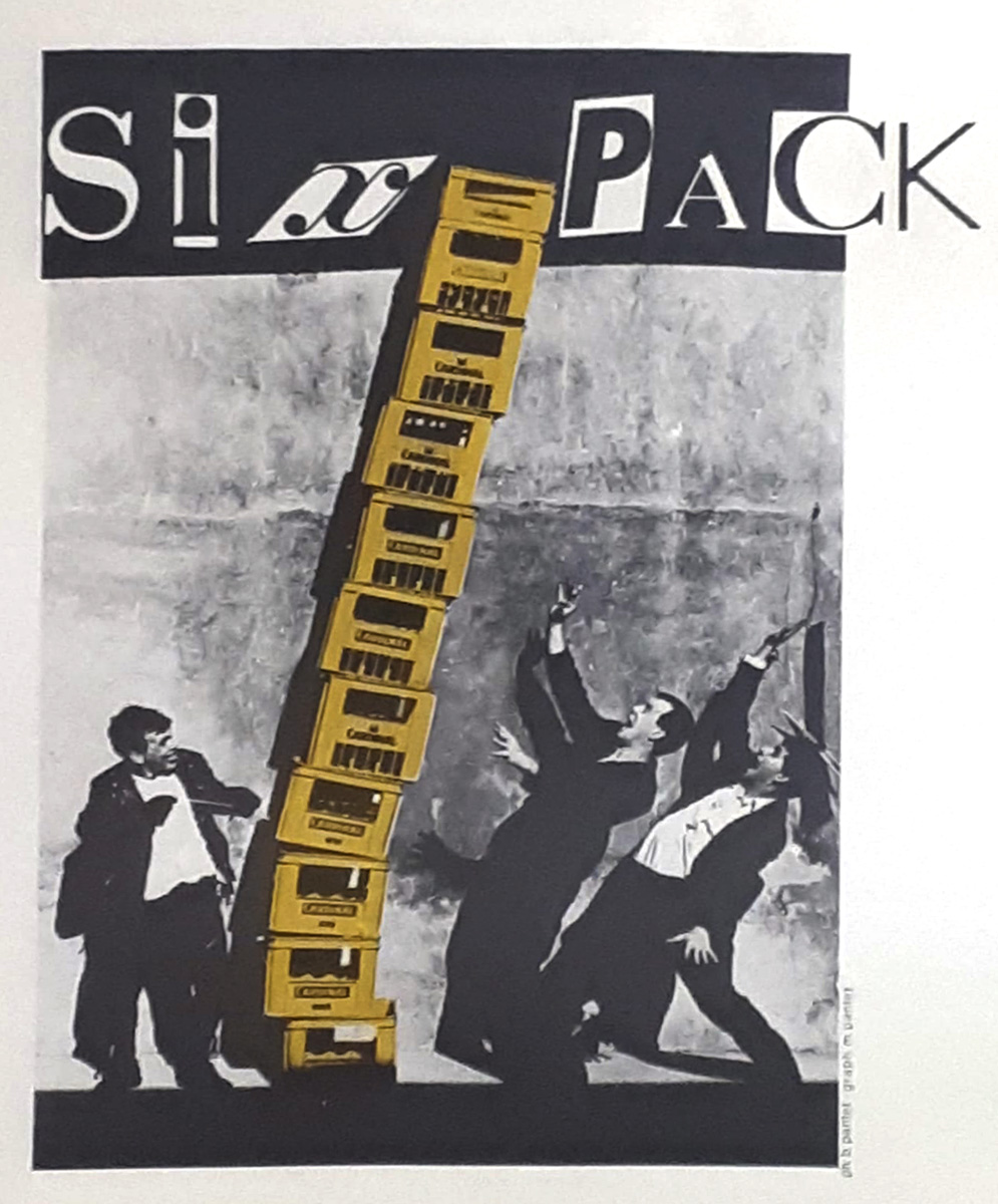 Groupe mythique des années 80, Six Pack dans son local à Montreux, en dessous de l’Alcazar. Gérald Pereira à la basse, Fonz au chant et à la guitare, Alain Aldag à la batterie. Ce sont eux les inventeurs du «drunk-rock» et des tubes inoubliables comme «Cardinal, the only beer» et «Watergun».