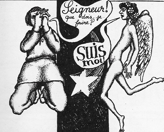 Passer un mythe dans le mixeur avec des ossements savoureux d’anciens personnages de BD, c’est ainsi qu’est né, dans ma boîte à histoires, le pot-au-feu à l’égyptienne «La fellation divine». Occasion aussi de détourner en plus du mythe, un symbole : le nez de Pinocchio, bâton télescopique rêvé pour s’adapter à toutes les facéties.