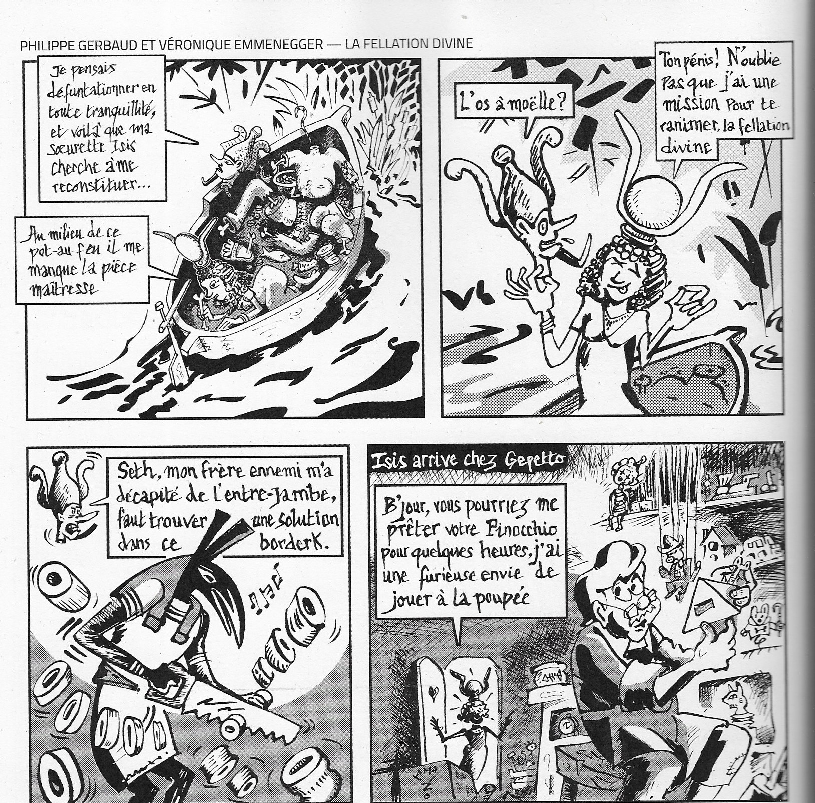 «La Fellation divine»: où il est question de la reconstitution des quatorze morceaux d'Osiris avec des clins d'oeil à Popeye, Pinocchio, Averell... et Gotlib.